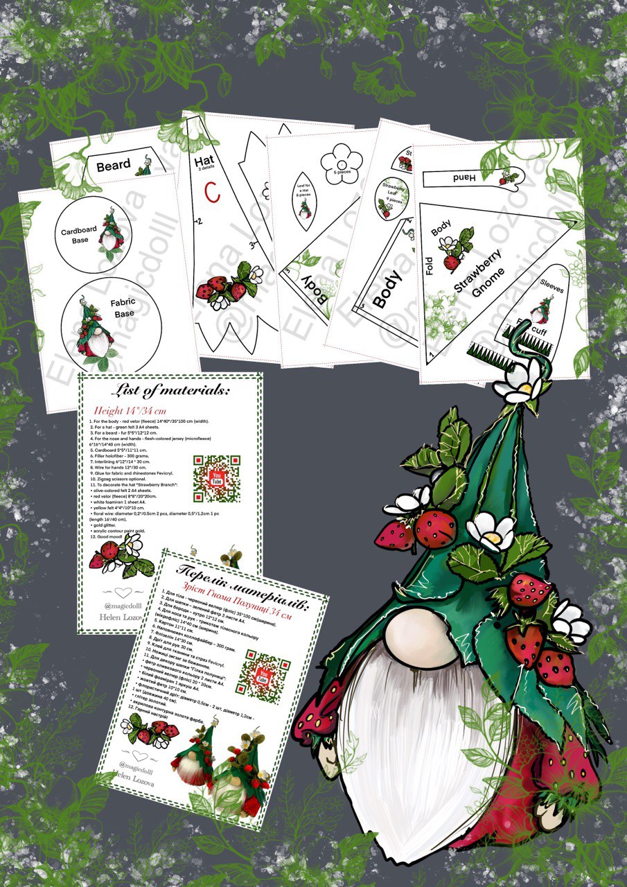 The free tutorial how to sew Strawberry Gnome you can find on my YOUTUBE channel – https://www.youtube.com/@magicdolll
